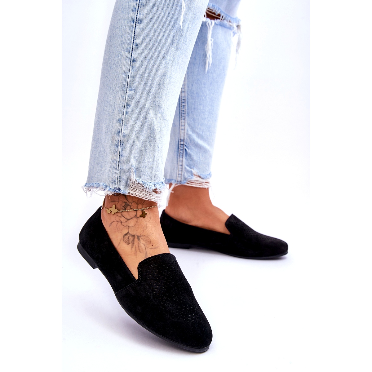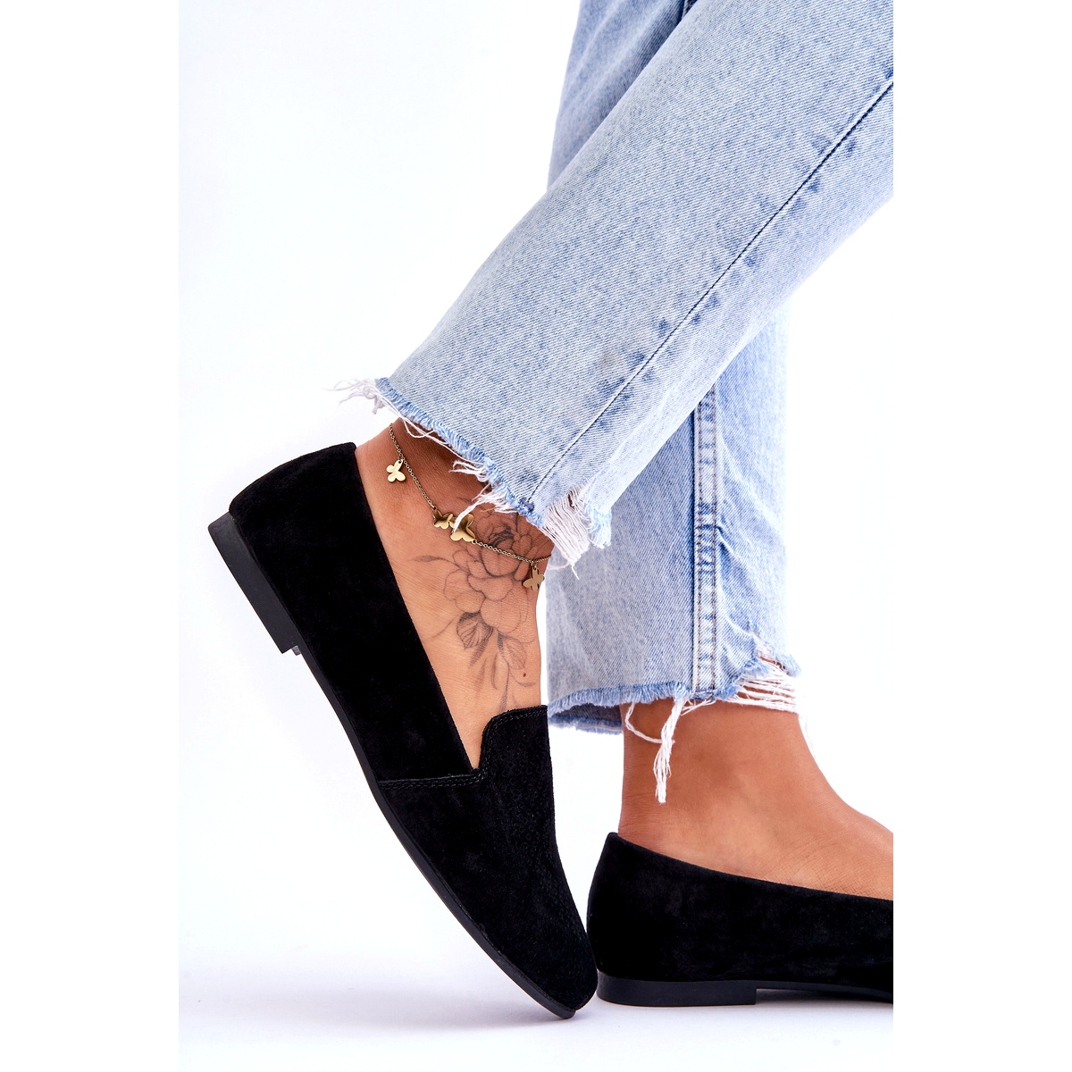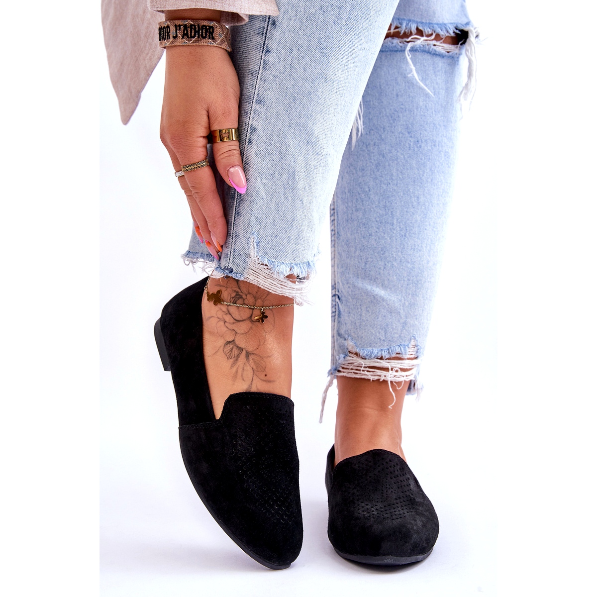 Descubra a elegância e o conforto com os mocassins femininos S. Barski, que são a escolha perfeita para qualquer ocasião. Feito de camurça natural de alta qualidade, esses mocassins pretos e abertos combinam estilo com funcionalidade. O padrão de trabalho aberto na frente lhes dá um personagem único, e o nariz de amêndoa enfatiza a sensualidade.