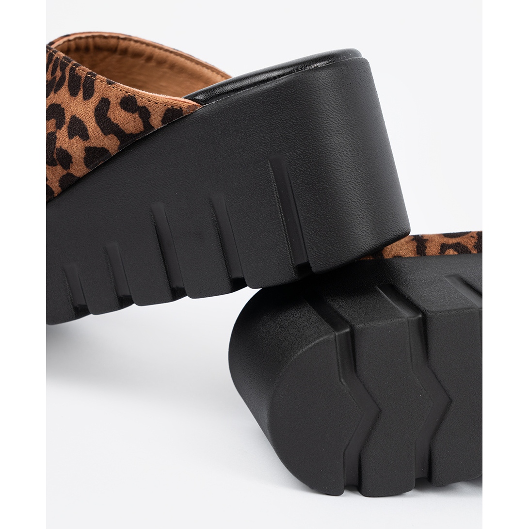 Os chinelos têm uma fixação aberta e um fecho deslizante, o que os faz colocar e tirar extremamente simples e conveniente. Uma inserção perfeitamente perfilada do couro ecológico garante conforto mesmo durante caminhadas mais longas, e um banco de 6,5 cm de altura acrescenta feminilidade e elegância a cada passo. O elegante padrão de leopardo faz com que os flip -flops combinam perfeitamente com várias roupas - vestidos de verão e jeans casuais.