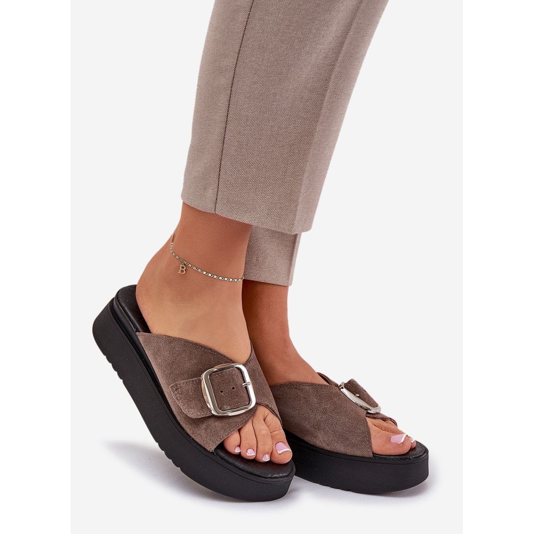 Camurça feminina chinelos com uma fivela na plataforma Brown Zazoo 3019 marrom