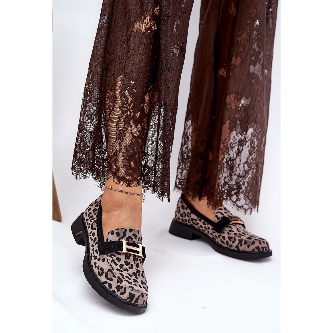 Detalhes: Camurça mocassins Vinceza 66792 impressão de leopardo cinza