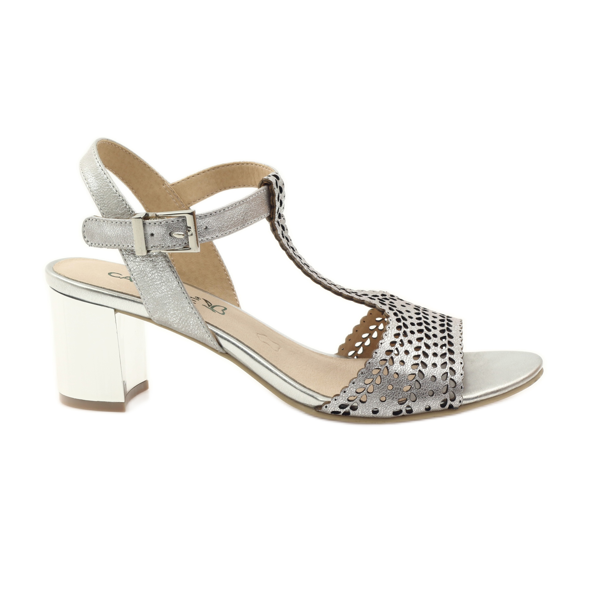 Detalhes: Caprice 28301 sandália vazada prateada cinza