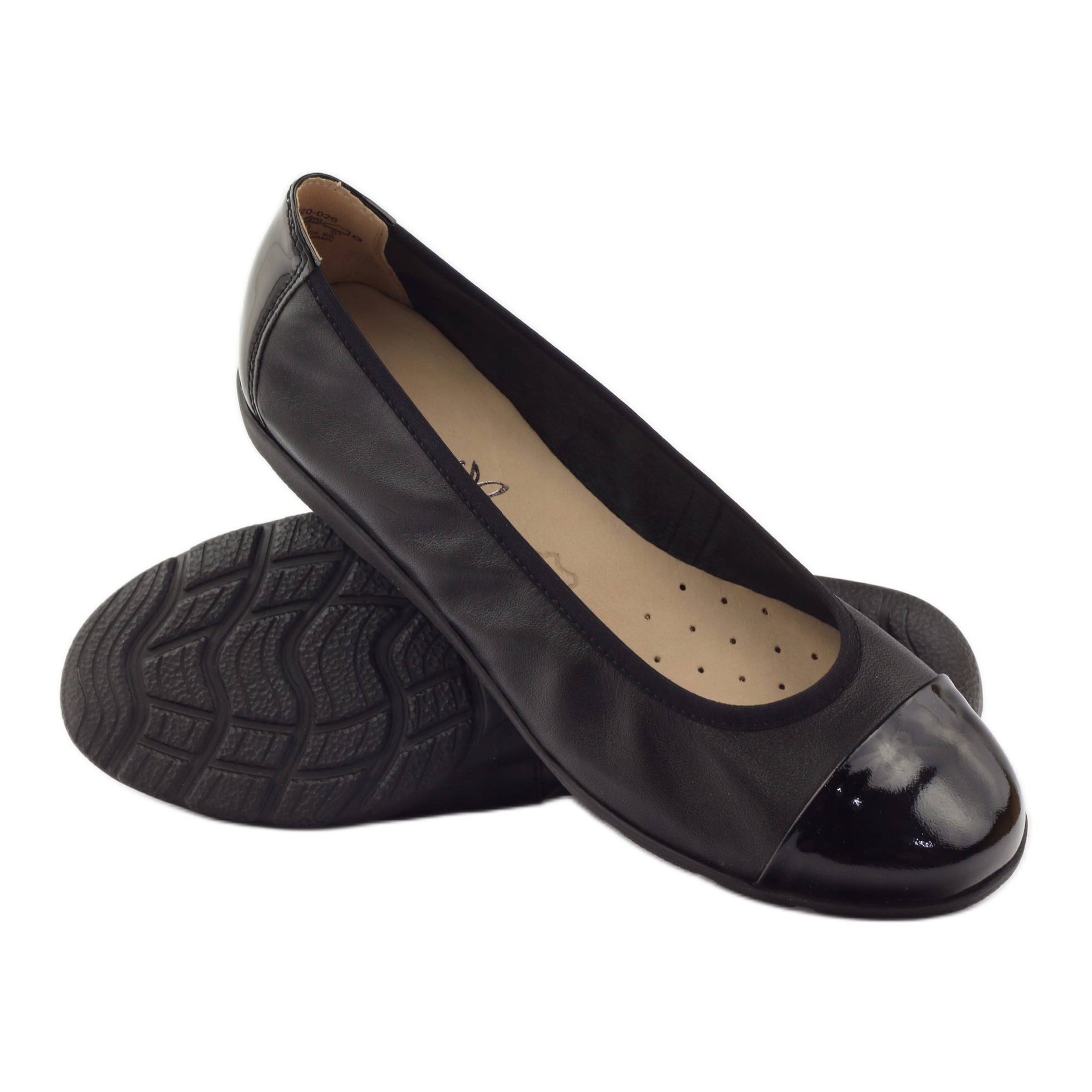 - Parte superior: couro natural da mais alta qualidade com elementos de couro envernizado preto.