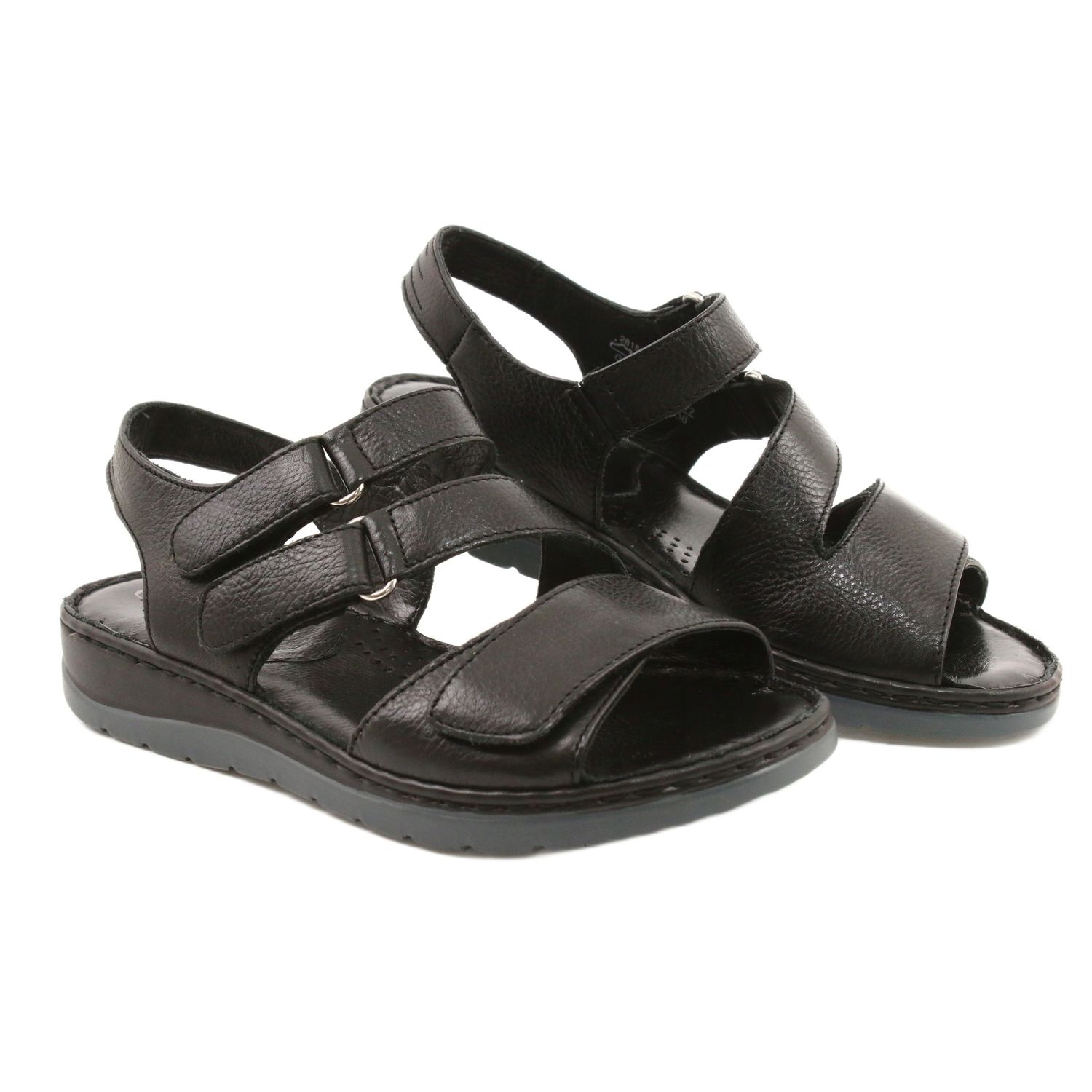 Detalhes: Caprice sandálias de couro confortáveis com velcro 28152-26 preto