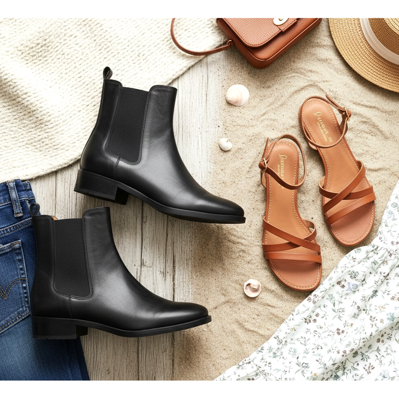 O terceiro e quarto pares: botins para o outono e sandálias para o verão