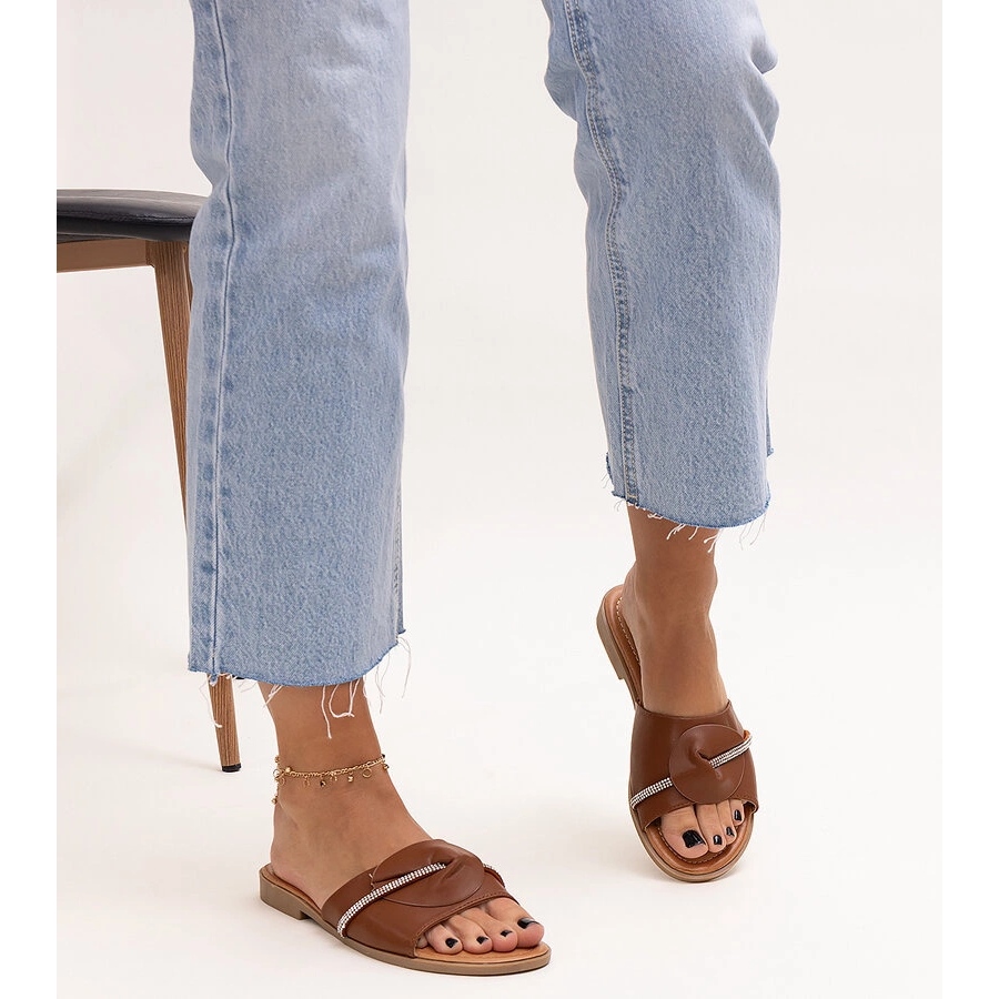 Feitos de couro orgânico, esses chinelos não são apenas ecológicos, mas também parecem elegantes. Além disso, as decorações na forma de zircões dão a eles um caráter elegante, o que certamente chamará a atenção.