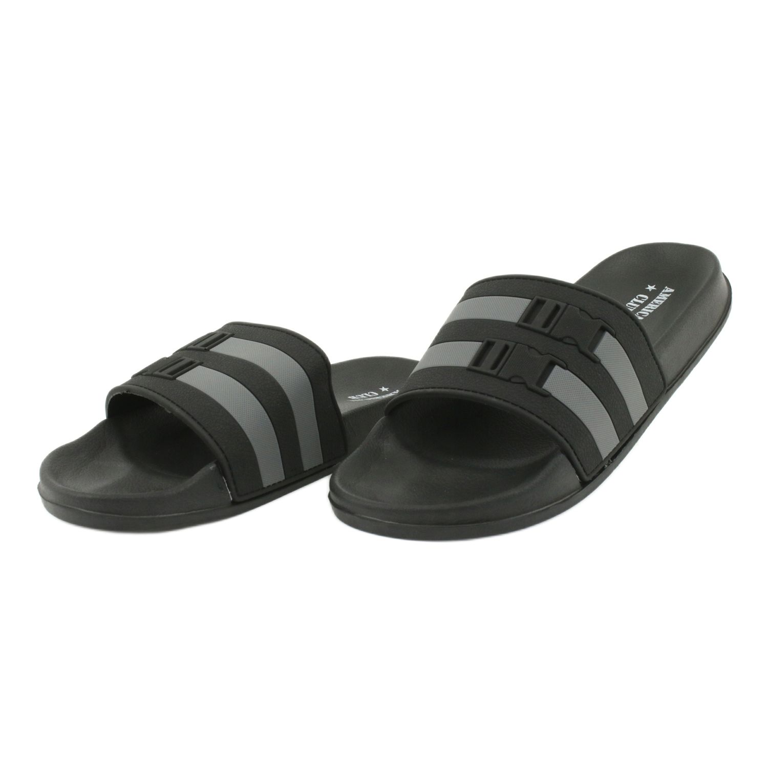American Club American Club Chinelos americanos de duas listras masculinos NH15 preto cinza