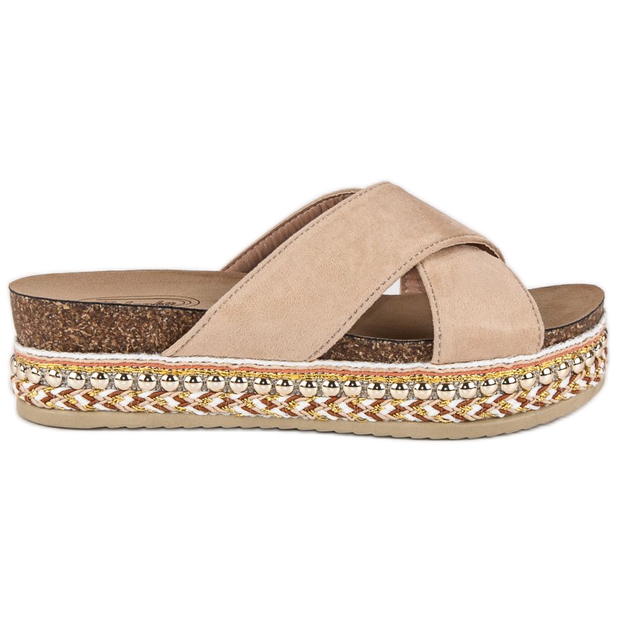 Descubra conforto e elegância nos chinelos plataforma bege da Inna Marka. Estes elegantes chinelos são a escolha perfeita para o uso diário, graças às suas cores universais que combinam perfeitamente com uma variedade de estilos. Confeccionados em couro ecológico de alta qualidade, proporcionam não só um visual moderno, mas também conforto de uso.