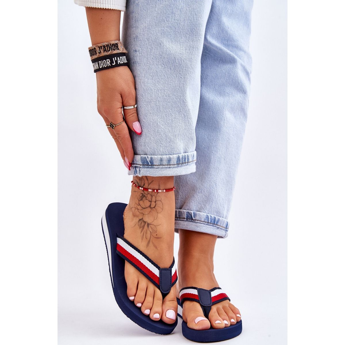 Os flip -flops leves, confortáveis e elegantes da marca Big Star, perfeitos para o verão. A parte superior é feita de tecido, enquanto a inserção e a sola de espuma, plástico sintético, garantindo depreciação e conforto ao longo do dia. O modelo é definido em uma plataforma com uma cunha delicada (altura/plataforma do salto: 3 cm) - eles alongam sutilmente a perna, mantendo o conforto. O corte deslizante facilita a instalação e funciona para a praia, para a cidade e todos os dias.