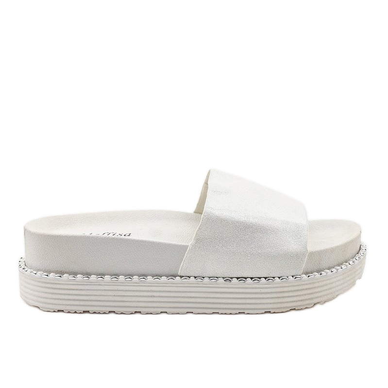 Inna marka Chinelos brancos com sola grossa, camurça brocado TL3808