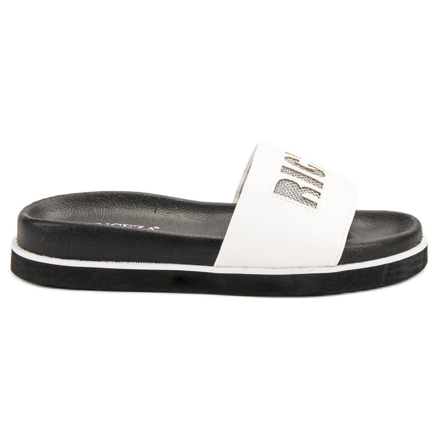 Prepare-se para o verão que se aproxima com os enormes chinelos da Vinceza, que se tornarão um elemento inseparável do seu guarda-roupa de férias. A sua cor branca minimalista combina perfeitamente com vários estilos, e a inscrição "RICH" acrescenta carácter e originalidade.