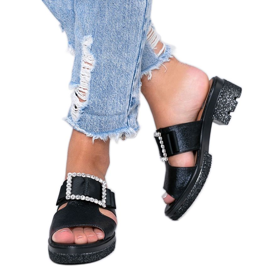 Detalhes: Chinelos brilhantes pretos com fivela Lizzy