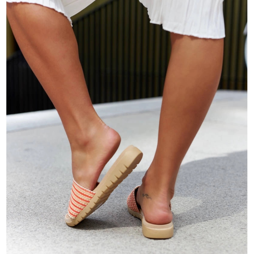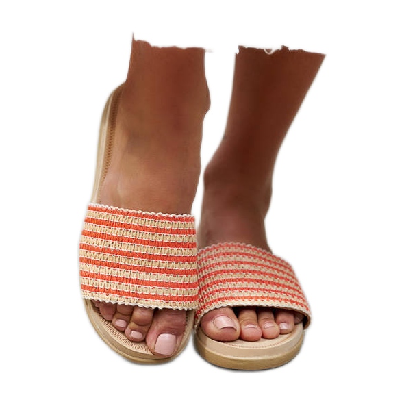 Chapo de capovalle trançado laranja - uma proposta leve e elegante para o verão. A combinação de laranja intensa com a sola bege e o interior faz com que o modelo chama a atenção, e a parte superior trançada adiciona um caractere elegante e feito à mão.