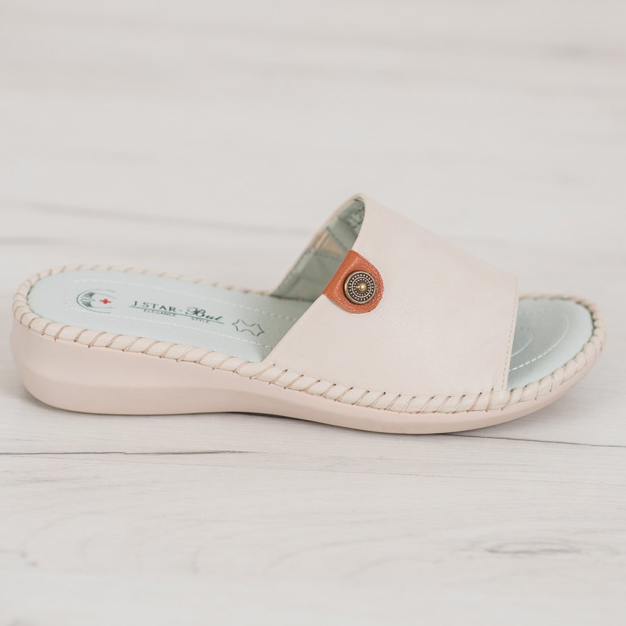 Detalhes: J. Star Chinelos casuais de couro ecológico bege