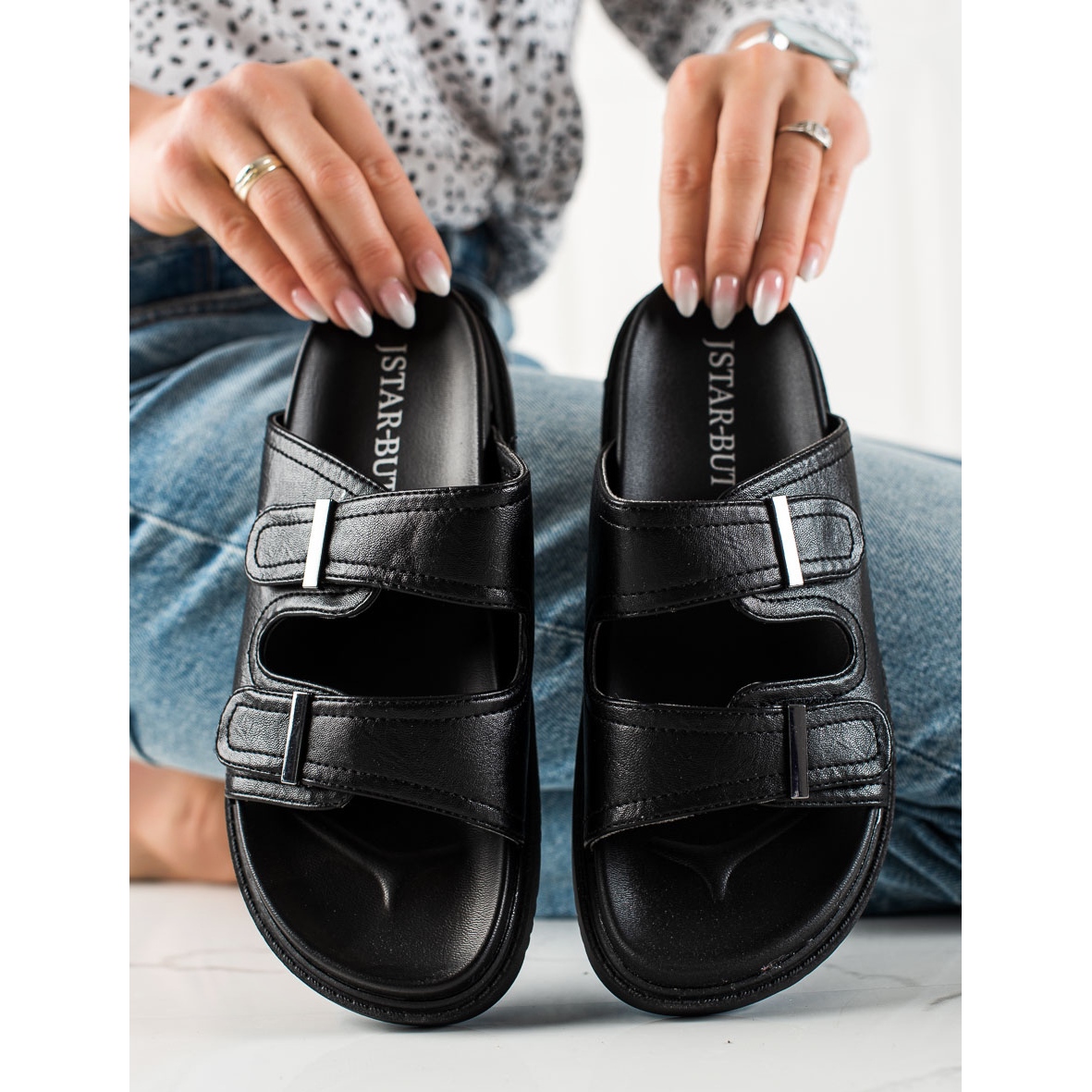 Detalhes: J. Star Chinelos casuais de velcro preto