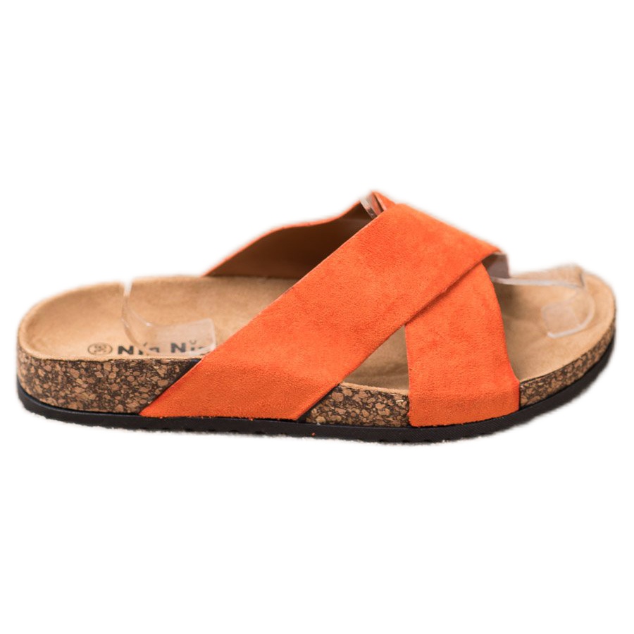 Apresentamos os chinelos casuais femininos laranja Nio Nio, que farão as delícias de todos os amantes de soluções de verão elegantes e confortáveis. Este calçado extremamente confortável com plataforma de 2,5 centímetros oferece um isolamento perfeito do solo, o que lhe permitirá desfrutar de um conforto duradouro nas atividades do dia a dia.