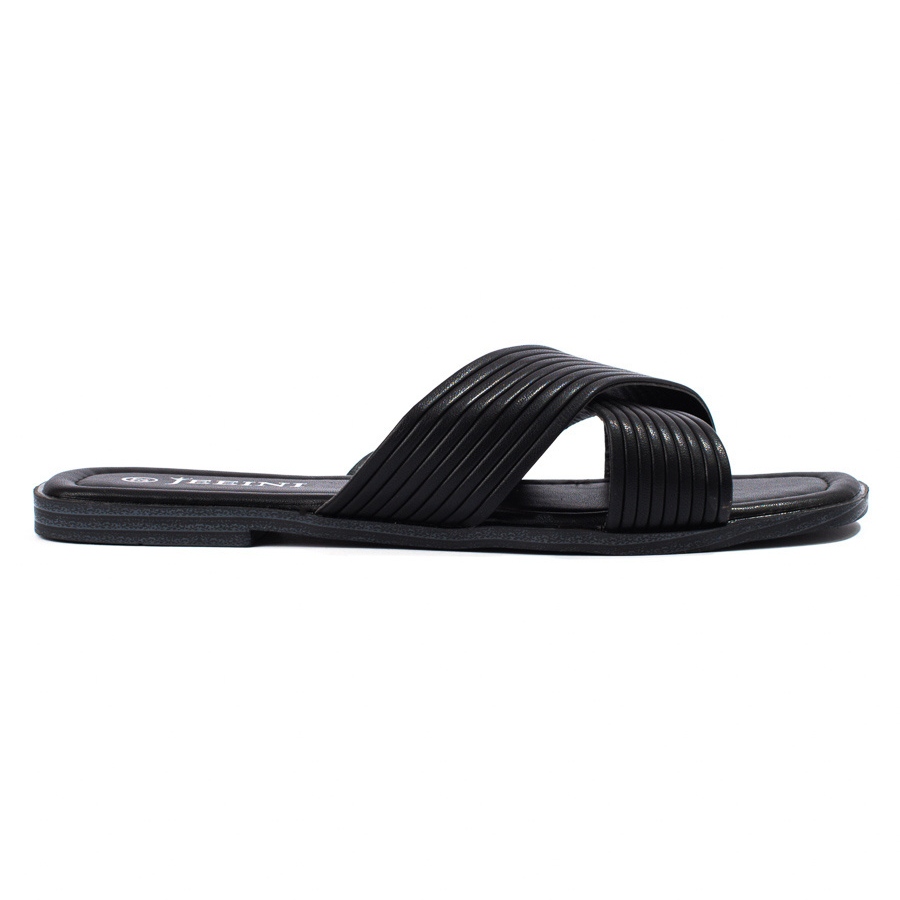 Os chinelos TRENDI combinam o estilo clássico com uma abordagem moderna da moda. O seu design minimalista sem padrões e a cor preta universal fazem deles uma combinação perfeita para muitos conjuntos casuais. A altura da plataforma de 1 cm torna-os não só elegantes, mas também confortáveis durante todo o dia.