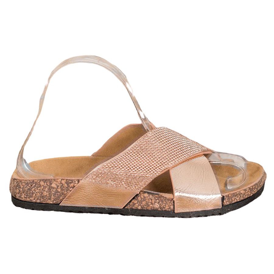 Descubra o charme extraordinário dos clássicos chinelos dourados da SHELOVET! Estes elegantes sapatos são a escolha perfeita para os dias de verão, aliando elegância e conforto. Os chinelos confeccionados em couro ecológico caracterizam-se por tiras largas e entrelaçadas que não só seguram perfeitamente o pé, mas também o estreitam opticamente.