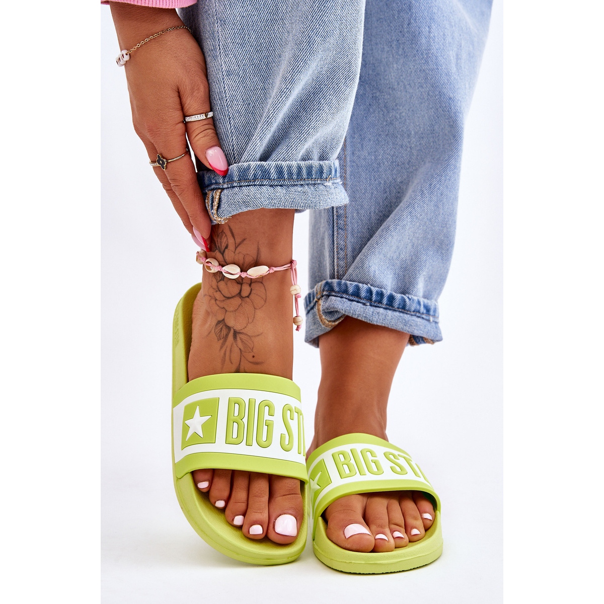 Detalhes: Chinelos clássicos femininos Big Star LL274742 limão verde