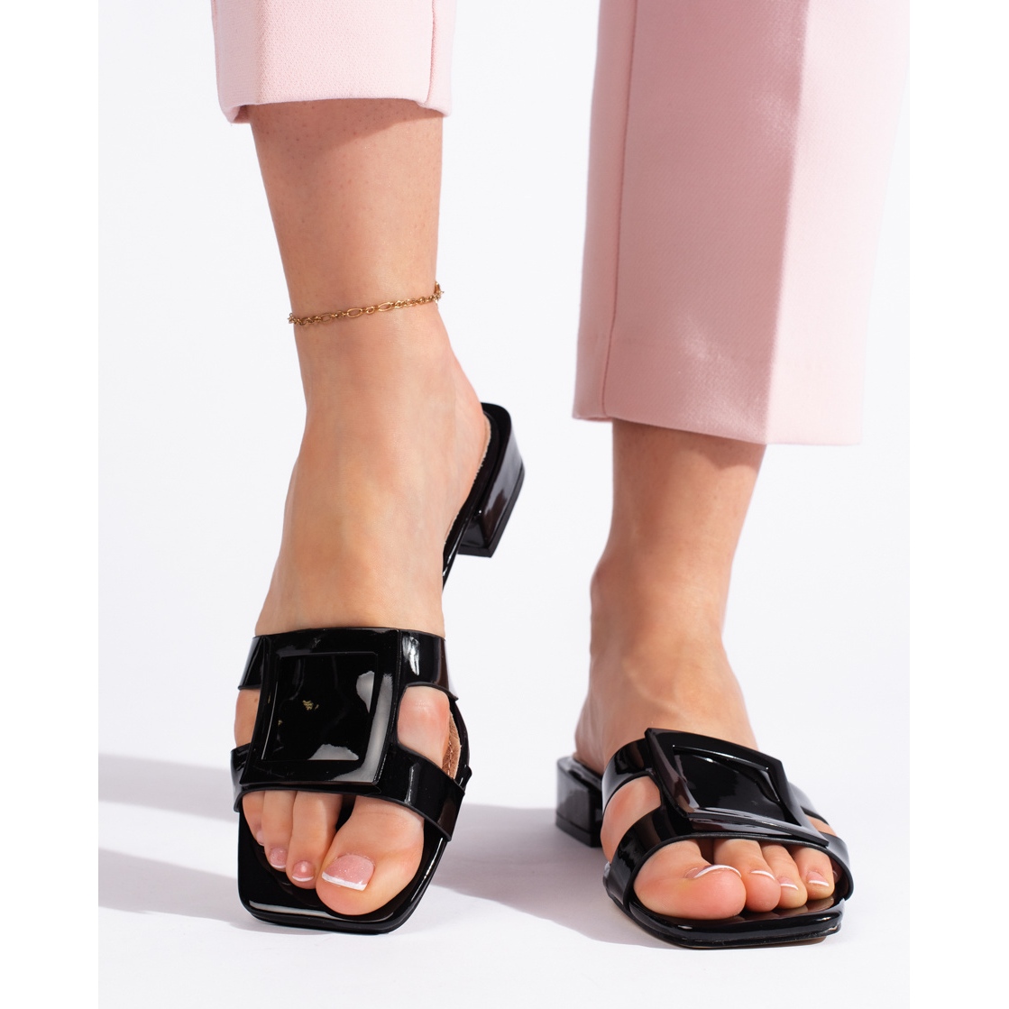 - Modelo: Chinelos femininos clássicos de couro envernizado