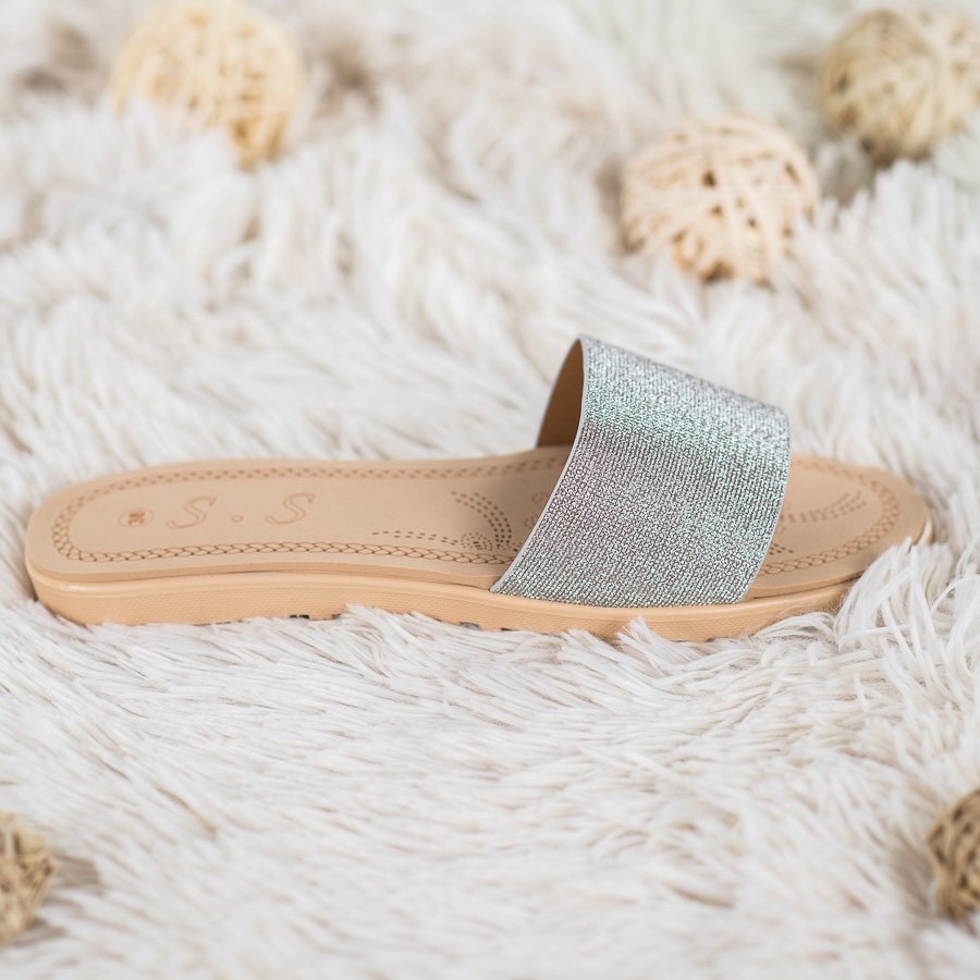 Elementos decorativos brilhantes adicionam brilho aos chinelos, para que possam ser combinados com sucesso com estilos casuais e elegantes. Estes chinelos exclusivos são a escolha perfeita para a primavera e o verão e farão as delícias de todos os amantes de acessórios de moda.