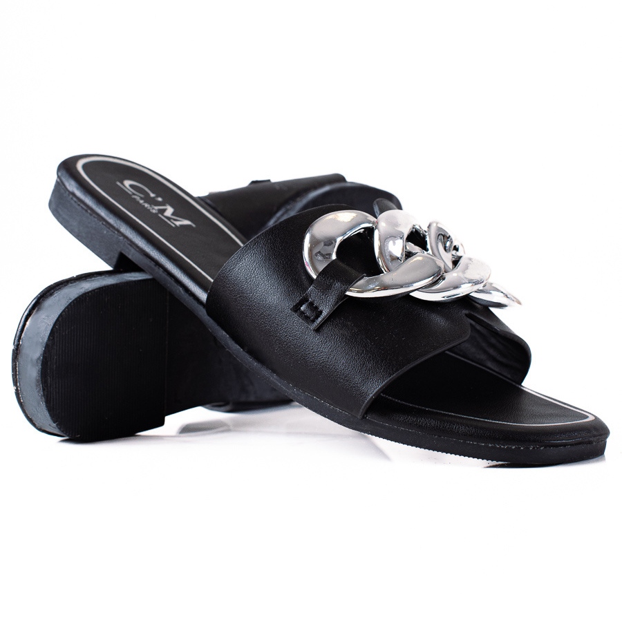Uma vantagem adicional destes chinelos é a impressionante corrente, que lhes confere um carácter único, tornando-os um complemento perfeito para qualquer estilo, desde vestidos de verão a calções de ganga. A palmilha é confeccionada em couro ecológico, garantindo conforto a cada passo.