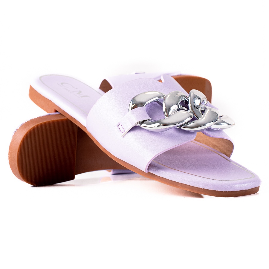 Descubra conforto e estilo com os chinelos SHELOVET com corrente na cor roxa intensa. Estes elegantes chinelos são a escolha perfeita para a primavera e o verão, combinando perfeitamente com o seu estilo do dia a dia. Graças ao fecho deslizante e ao salto aberto, usá-los é puro prazer - basta deslizar o pé para se sentir confortável.