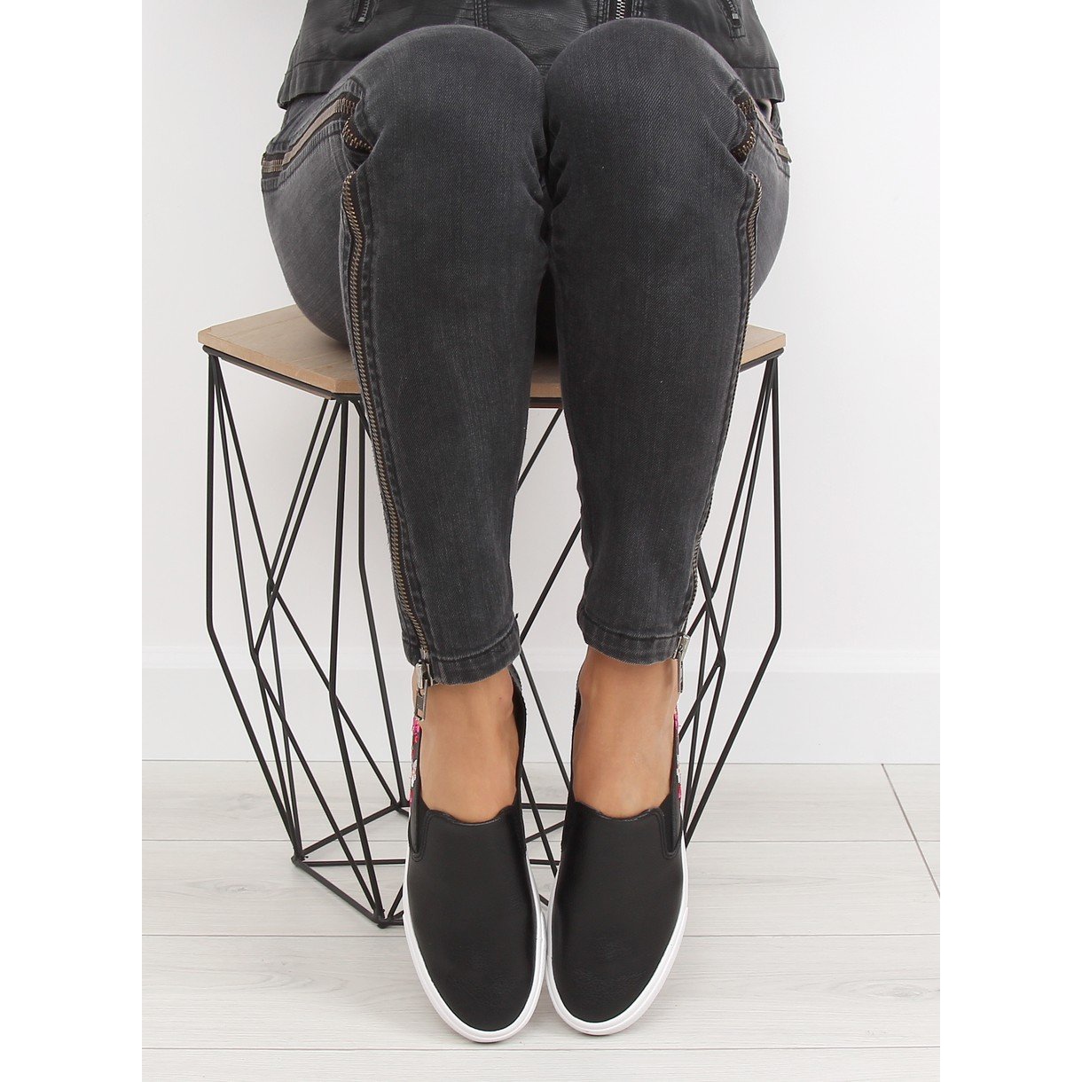 G1204A Cueca preta preta com delicados bordados é a escolha perfeita para toda mulher que valoriza estilo aliado ao conforto. Confeccionados em couro ecológico macio, adaptam-se perfeitamente ao pé, garantindo conforto o dia todo. O interior dos sapatos é forrado a tecido, o que aumenta o prazer de calçá-los e, graças ao fecho slip-on, os slipons são extremamente fáceis de calçar e tirar.