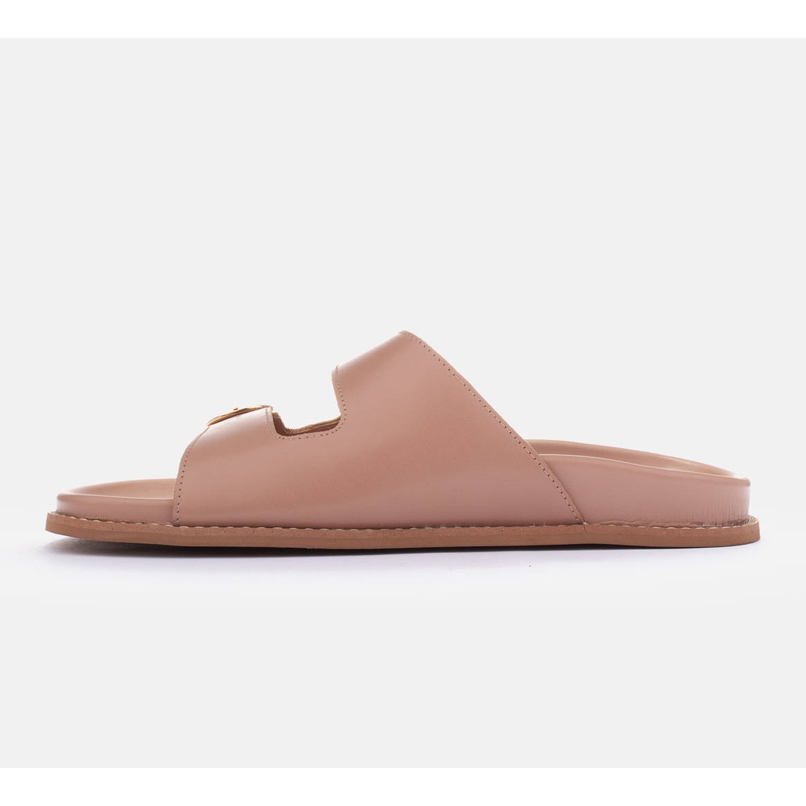 Um dos elementos que distinguem estes chinelos no mercado são as tiras de couro ajustáveis com acabamento em uma elegante fivela dourada. Graças a isto, o calçado pode adaptar-se perfeitamente às necessidades do seu pé, garantindo um ajuste e conforto perfeitos. Além disso, o design original e a cor atemporal tornam os chinelos fáceis de combinar com muitos estilos.