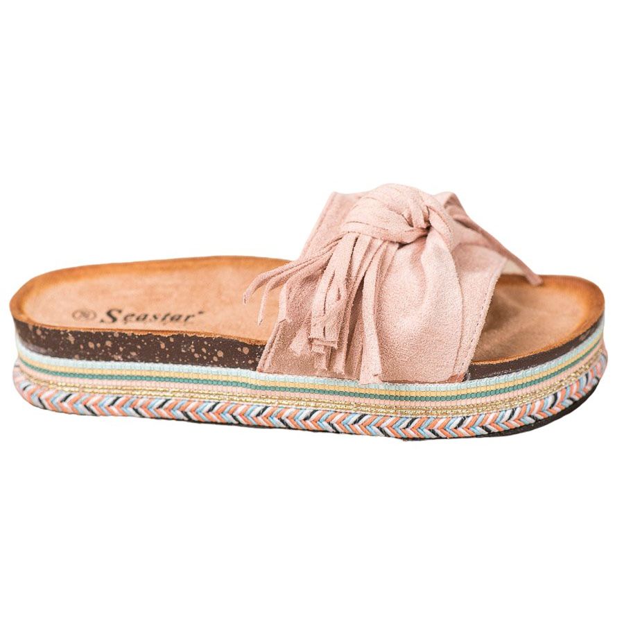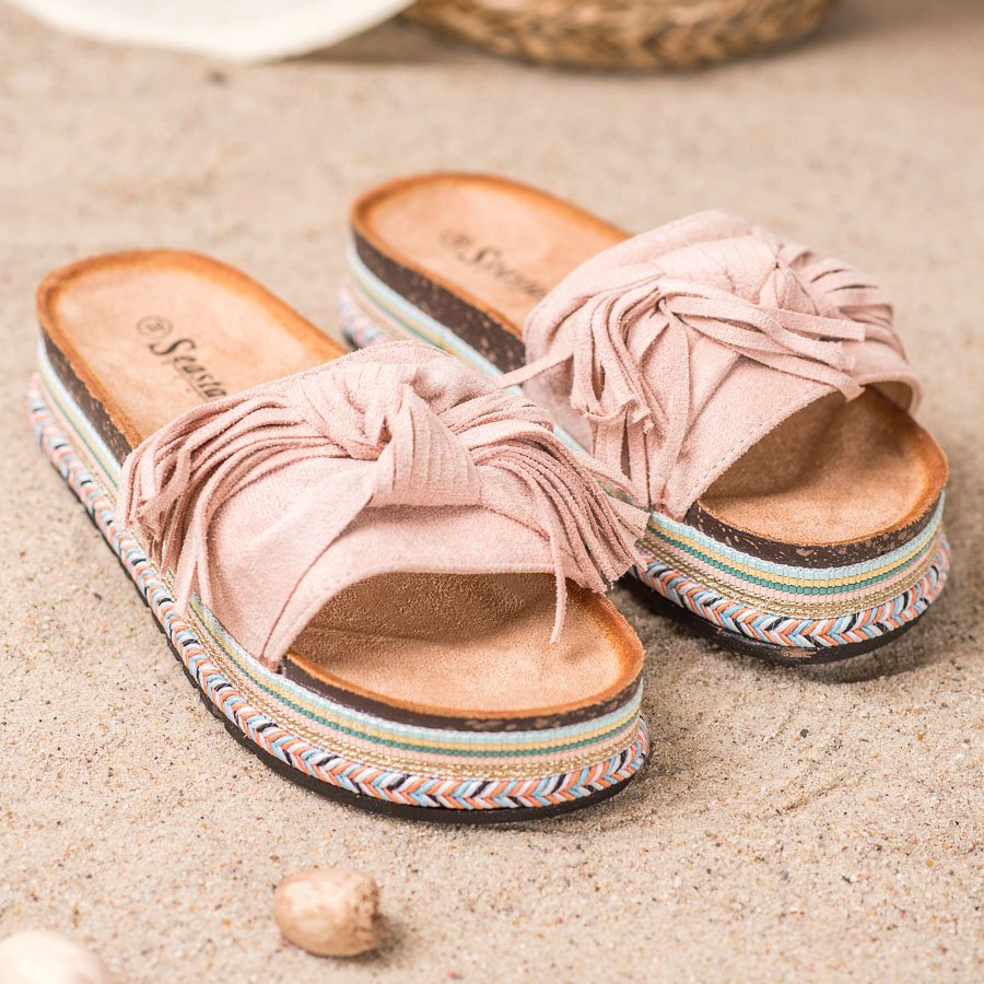 Os chinelos Seastar Pink Fringed são a escolha perfeita para mulheres que procuram calçados de verão elegantes e confortáveis. Na cor rosa salmão, estes chinelos enquadram-se perfeitamente nas tendências de verão, oferecendo praticidade e elegância ao mesmo tempo.