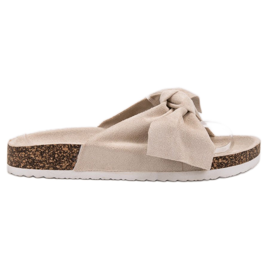 Confeccionados em tecido de alta qualidade, os chinelos caracterizam-se não só por um design atraente, mas também por um corte confortável. A cor castanha combinada com um subtil laço bege torna-os universais e fáceis de combinar com vários estilos.