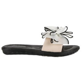 Oferecemos-lhe fantásticos chinelos castanhos com laço, perfeitos para os dias de verão. Estes sapatos originais combinam estilo e conforto, sendo a escolha perfeita para as tardes quentes e ensolaradas. Graças à utilização de um tecido arejado, o pé ficará agradavelmente confortável no uso e a construção leve permitirá que você aproveite cada momento ao ar livre.