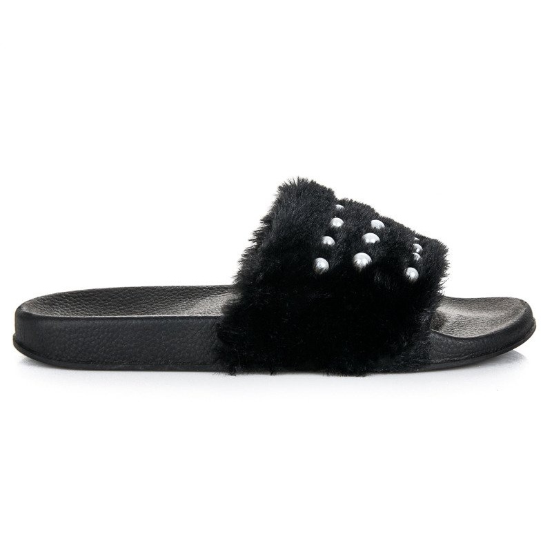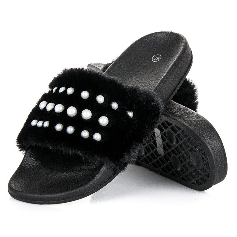 Estes chinelos pretos com pele e pérolas não são apenas calçado, mas também um acessório de moda que vai complementar qualquer estilo de verão. Perfeitos para passear pela cidade, encontrar amigos ou relaxar no jardim - confira hoje mesmo e adicione um pouco de moda ao seu guarda-roupa!