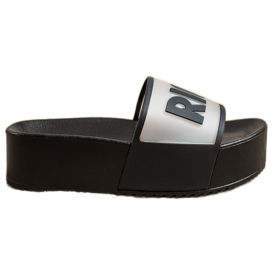 Detalhes: Small Swan Chinelos com plataforma rica preto
