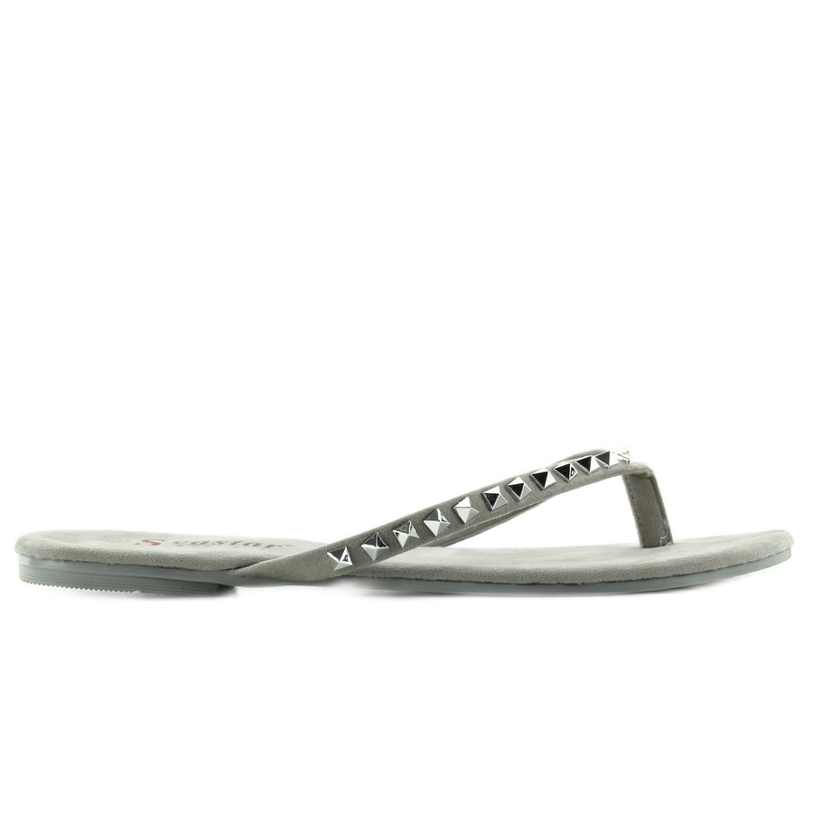Detalhes: Chinelos com tachas de pirâmide cinza DD26