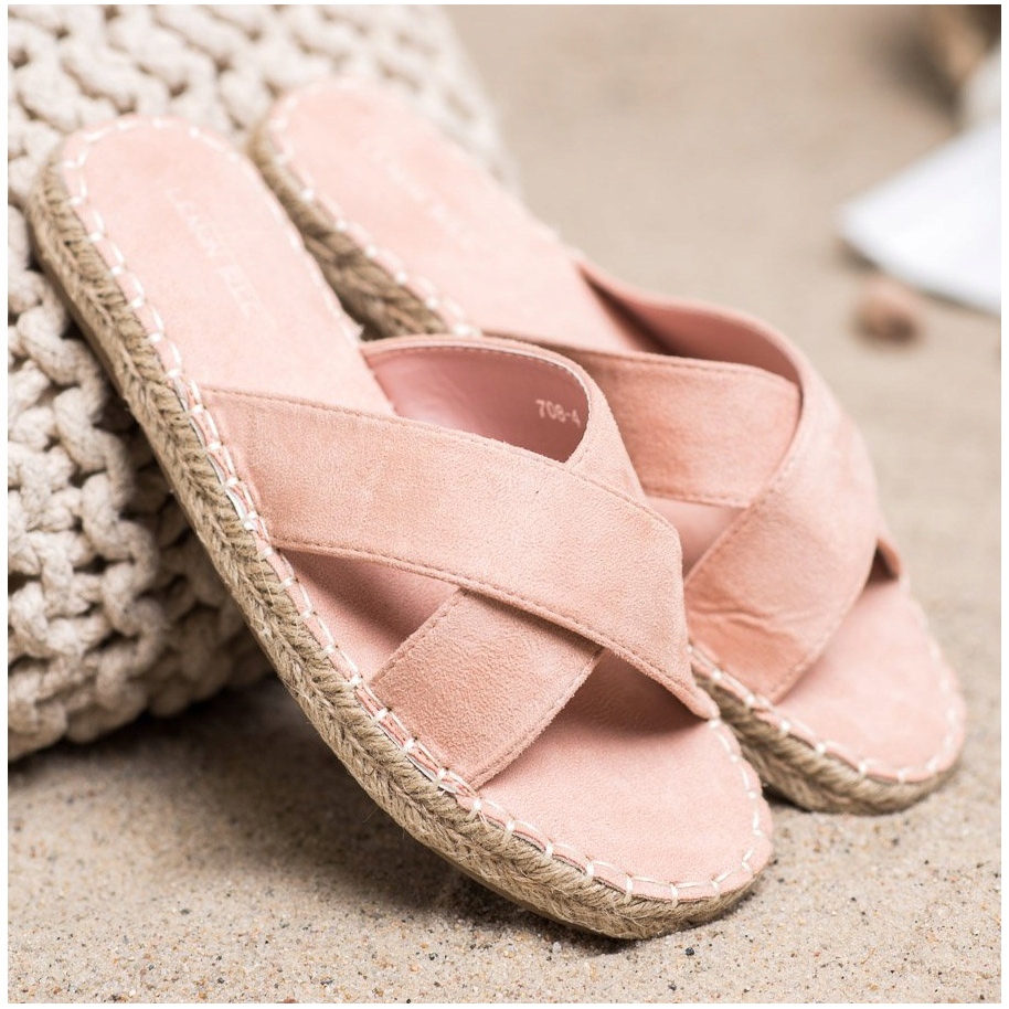 Confeccionadas em material ecológico imitando camurça, as tiras de camurça envolvem o pé e proporcionam um visual fashion. A sola trançada acrescenta originalidade e a sutil cor rosa faz com que os chinelos combinem perfeitamente com vestidos de verão estilo boho. Graças às suas linhas simples e design minimalista, estes chinelos podem ser facilmente combinados com uma variedade de estilos - do casual ao um pouco mais elegante.