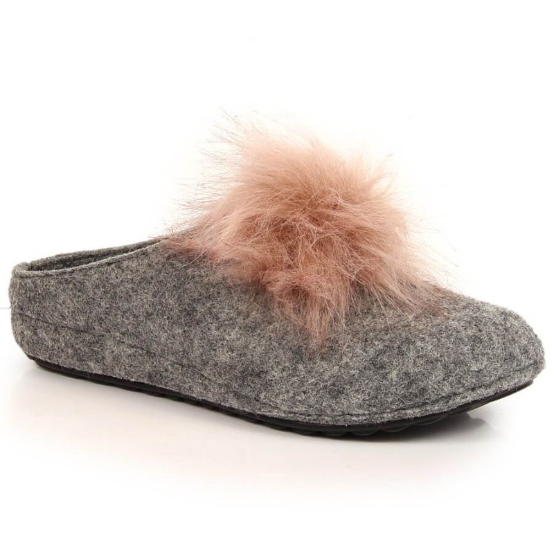 Detalhes: Chinelos confortáveis de feltro com pompom Panto Fino INT1767B cinza