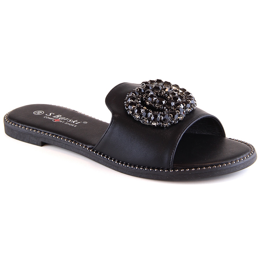 S.Barski Chinelos confortáveis de mulher com zircões pretos S.Barski Kv 520-30