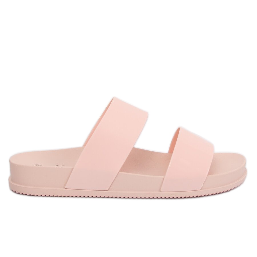 Duas tiras largas de plástico + borracha não só ficam bem no pé, mas também são funcionais - mantêm o pé na posição correta, o que é crucial para o conforto durante o uso. A cor rosa dos sapatos vai dar personalidade a qualquer estilo, introduzindo um toque vivo e enfatizando o bronzeado do verão.