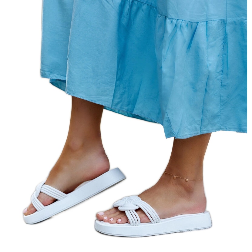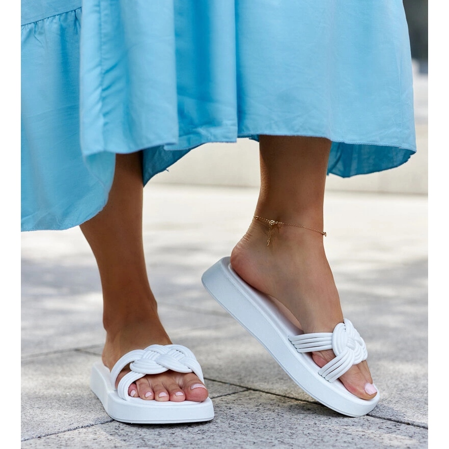 O modelo CM-49 é distinguido por um fecho deslizante, o que facilita a instalação. A plataforma de 3 cm de alta garante o conforto de usar o dia todo, e a cor branca da sola se encaixa perfeitamente nas últimas tendências da moda. Os chinelos de Ferrei fazem parte da coleção de verão e certamente se tornarão um elemento favorito do guarda -roupa de todas as mulheres.