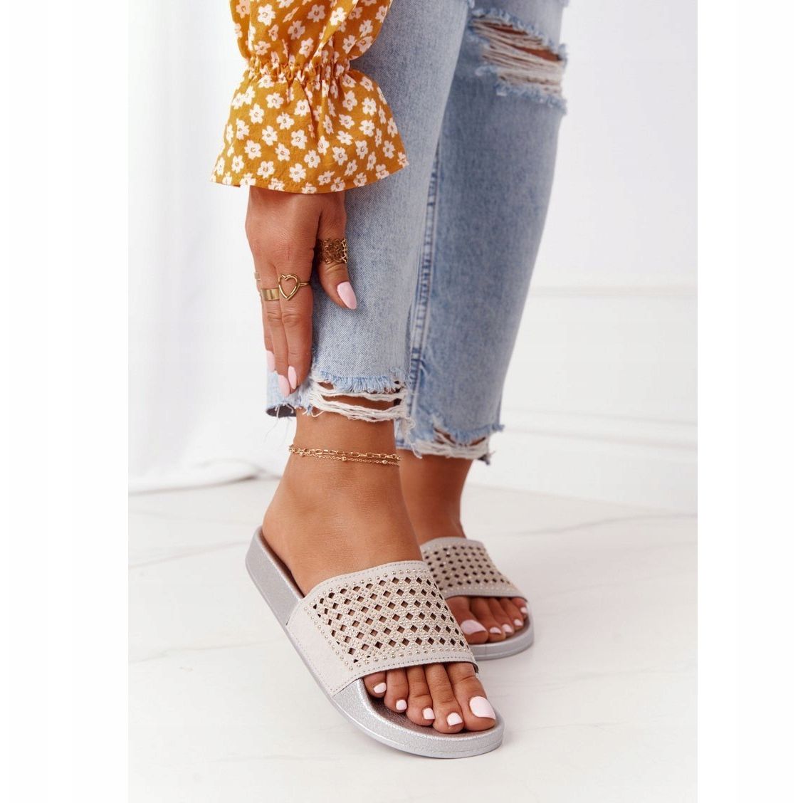 Descubra a elegância do verão com os chinelos de borracha EVE Tonya na moderna cor cinza, decorados com lantejoulas! Estes chinelos femininos são a escolha ideal para mulheres que valorizam conforto e estilo no uso diário. Graças ao fecho slip-on são fáceis de colocar e tirar, o que os torna a escolha perfeita para a praia, um passeio pela cidade ou relaxar no jardim.