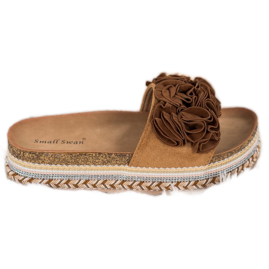 Detalhes: Small Swan Chinelos de camurça com enfeites marrom
