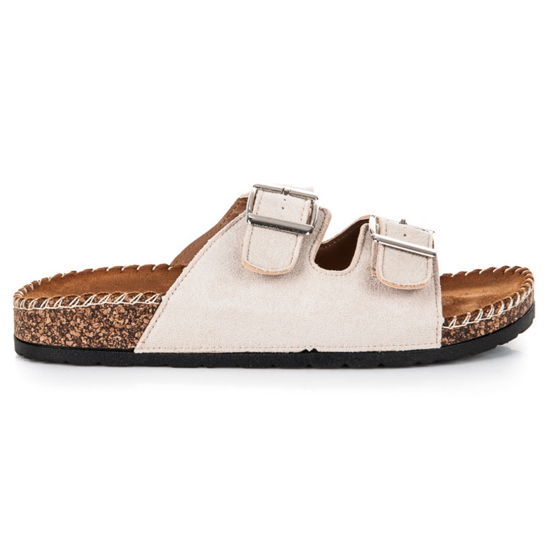 Confeccionados em couro ecológico de alta qualidade, os chinelos além de ecologicamente corretos, são extremamente confortáveis. O material do forro em tecido proporciona ventilação e maciez adequadas, o que torna cada passo um prazer. A altura do salto de 3 cm acrescenta um aumento sutil e ao mesmo tempo não restringe a liberdade de movimentos.