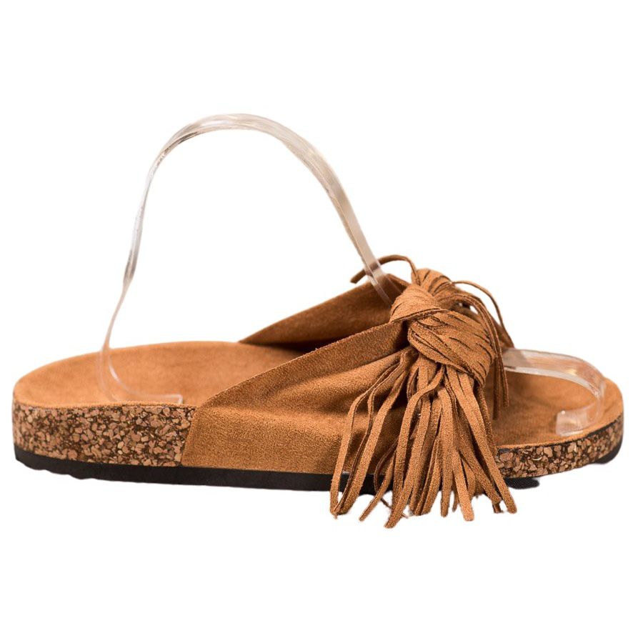 Detalhes: Bestelle Chinelos de camurça com franjas marrom