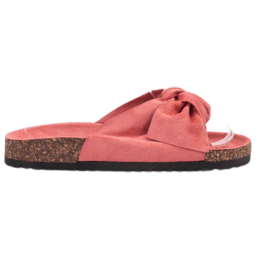 Detalhes: Bona Chinelos de camurça com laço vermelho