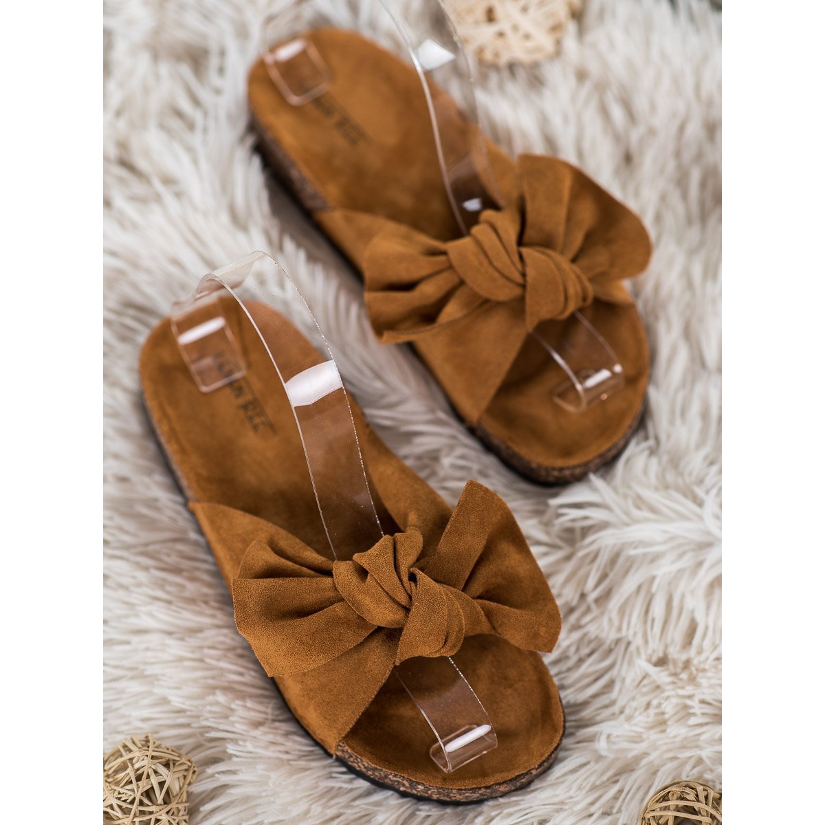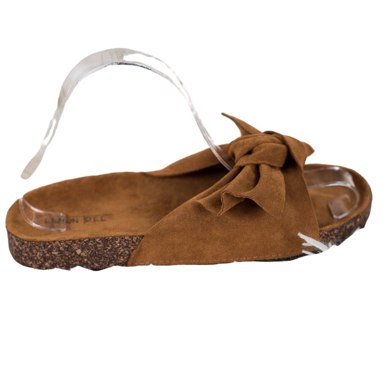 Detalhes: SHELOVET Chinelos de camurça com laço marrom