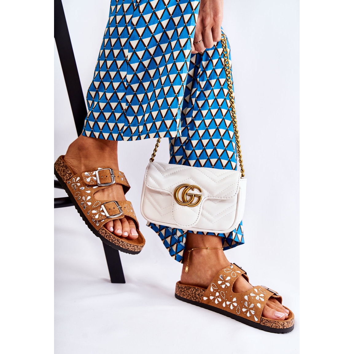Descubra elegância e conforto no estilo do dia a dia graças aos chinelos PG1 marrons confeccionados em camurça ecológica, que combinam perfeitamente o design clássico com detalhes modernos. Este modelo caracteriza-se por uma plataforma de cortiça maciça com 3,5 cm de altura, que garante conforto de utilização durante todo o dia. Uma vantagem adicional são duas alças ajustáveis com fivelas que permitem ajustar perfeitamente os chinelos às suas necessidades individuais.