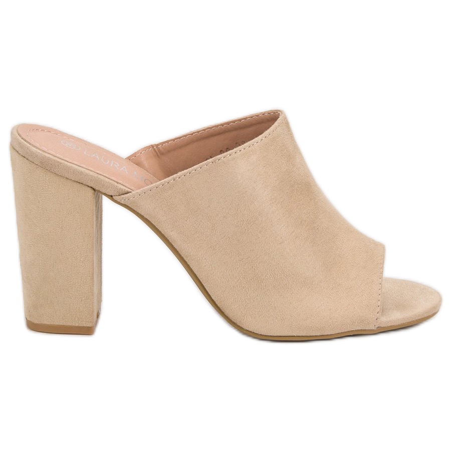 Descubra o estilo e o conforto incomparáveis oferecidos pelos mules de salto em camurça marrom da Laura Mode. Estes sapatos elegantes são a escolha perfeita para os dias de primavera e verão, quando você quer se sentir na moda e confortável. O seu design minimalista em tons de castanho claro faz com que combinem perfeitamente com vários estilos, tanto casuais como mais elegantes.