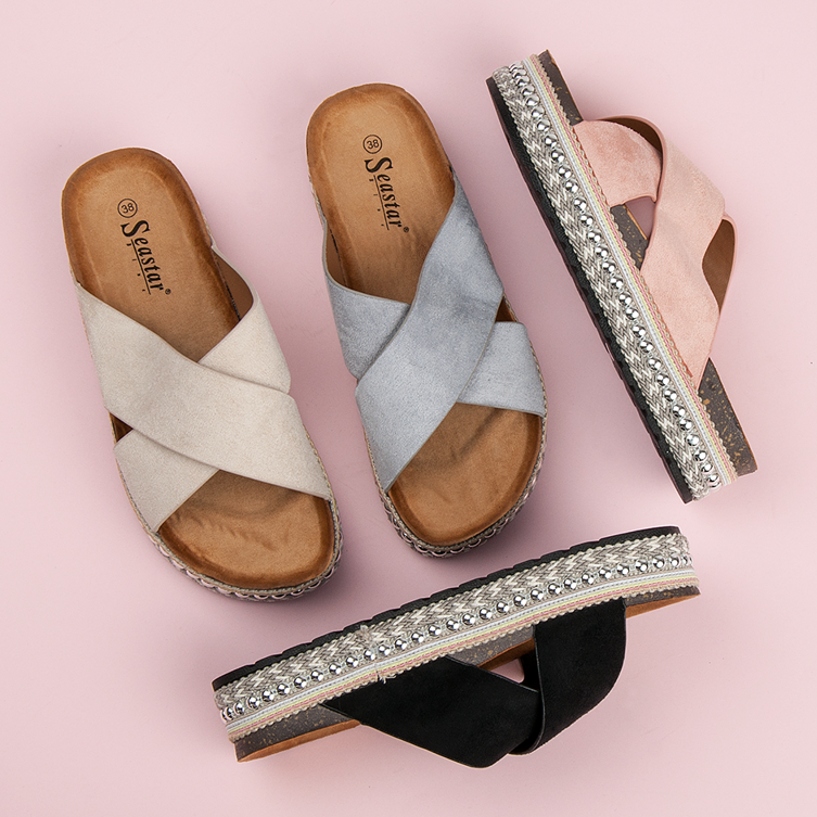 Graças à falta de nariz, os chinelos oferecem excelente ventilação, o que os torna a escolha ideal para os dias de verão. O padrão dominante é um padrão diferente, que faz com que os chinelos se destaquem dos modelos clássicos, acrescentando personalidade a qualquer estilo. Os chinelos plataforma Seastar Suede são um must-have no guarda-roupa de toda fashionista que valoriza a combinação de conforto e estilo.