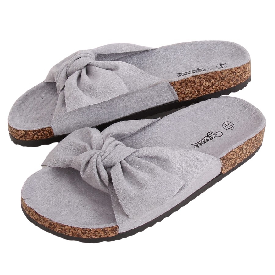 Os chinelos encantam com um laço charmoso que os torna elegantes e delicados. A palmilha perfilada forrada a tecido proporciona um óptimo suporte aos pés, pelo que longas caminhadas não serão problema. Feitos em camurça ecológica, são ecológicos e ao mesmo tempo modernos - uma escolha perfeita para o uso diário!