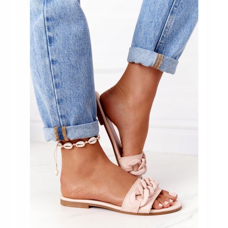 Detalhes: PS1 Chinelos de couro com corrente bege passo a passo